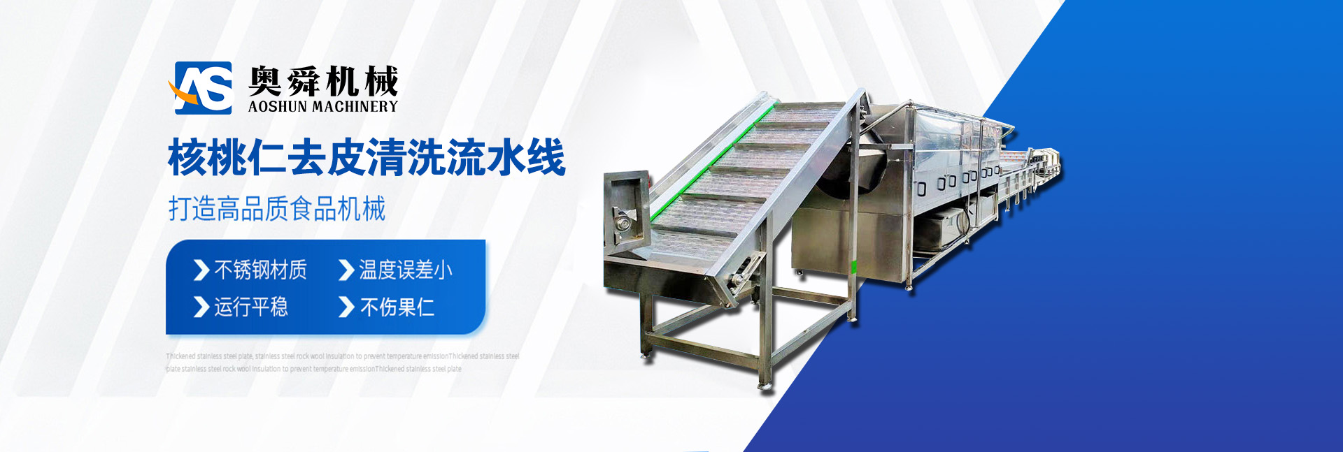 山東奧舜機(jī)械科技有限公司是一家生產(chǎn)食品機(jī)械的民營(yíng)企業(yè),制造環(huán)保機(jī)械、食品生產(chǎn)流水線。市場(chǎng)覆蓋全國(guó),并出口多個(gè)和地區(qū)。 我公司以做好產(chǎn)品質(zhì)量為宗旨,按照“以效益為核心,質(zhì)量為主題,管理為主線,技術(shù)創(chuàng)新為動(dòng)力,靠質(zhì)量求生存,靠品種闖市場(chǎng)”的思路,確保過(guò)硬的產(chǎn)品質(zhì)量和良好的公司信譽(yù)。以其優(yōu)良的品質(zhì)、精致的設(shè)計(jì)、精良的制造、精心的服務(wù)贏得廣大新老用戶的信譽(yù),向社會(huì)提供更加和完善的產(chǎn)品與服務(wù)。